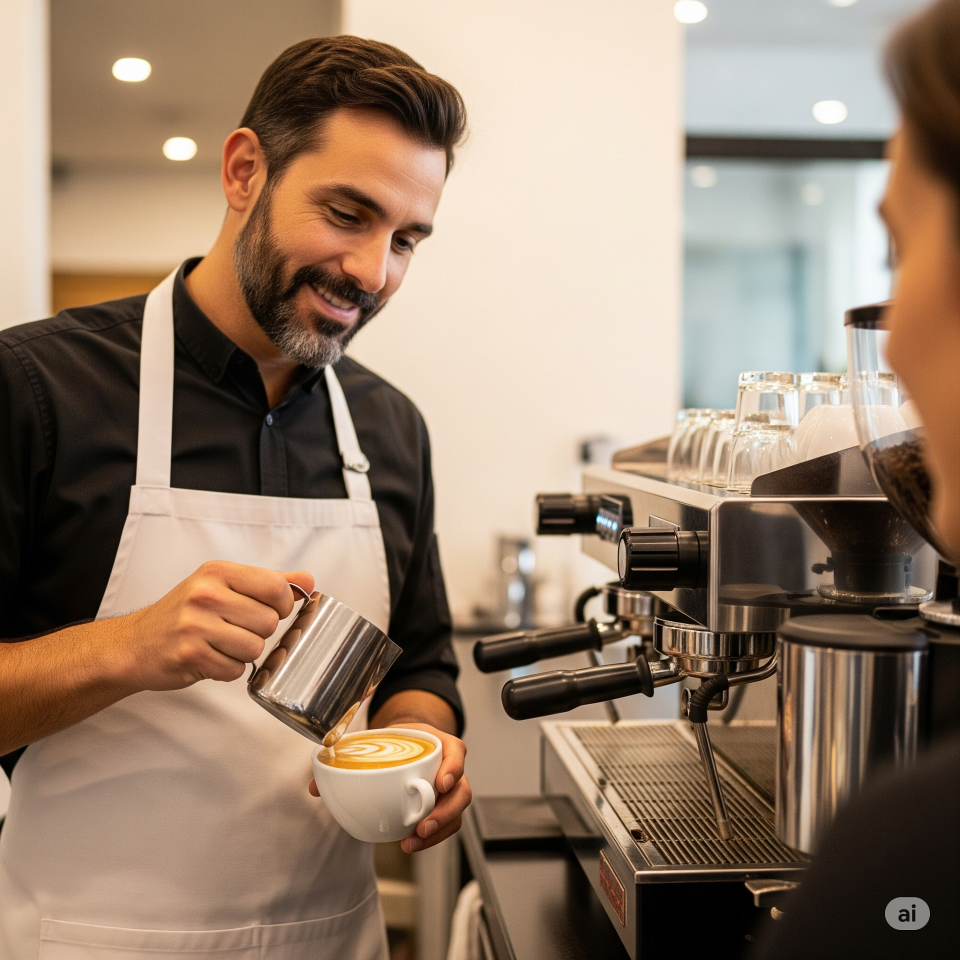 Gabriela, una joven de unos 30 años, es el corazón sonriente detrás del mostrador de "CoffeeLovers". Desde el momento en que cruzó la puerta buscando empleo, Gustavo supo que había encontrado a alguien especial. Gabriela no solo tenía experiencia en el servicio al cliente, sino que sus ojos brillaban con la misma genuina pasión por el café que lo había impulsado a él a abrir la cafetería.